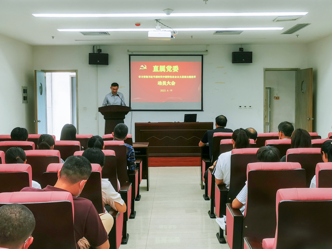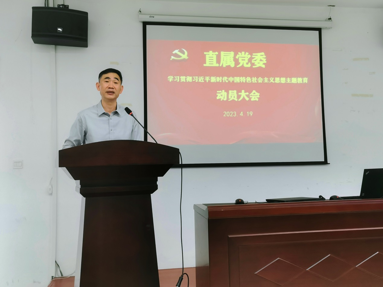 会上,直属党委书记作主题教育动员讲话,传达了学校学习贯彻习近平新时代中国特色社会主义思想主题教育工作会议要求和校党委《关于深入开展学习贯彻习近平新时代中国特色社会主义思想主题教育的实施方案》主要精神;指出在全党深入开展学习贯彻习近平新时代中国特色社会主义思想主题教育,是党中央总揽全局作出的重大决定,是为全面贯彻党的二十大精神、动员全党同志为完成党的中心任务而团结奋斗作出的重大部署,是深入推进新时代党的建设新的伟大工程的重大部署,对于全党统一思想、统一意志、统一行动,奋力完成党在新时代新征程的使命任务,对于推动党和国家事业发展,具有十分重大意义;并结合直属党委实际强调:一要切实提高政治站位,全体党员干部要站在捍卫“两个确立”、做到“两个维护”的政治高度,深刻认识开展主题教育的重大政治意义、理论意义和实践意义,切实把思想和行动统一到以习近平同志为核心的党中央重大决策部署上来,牢牢把握“学思想、强党性、重实践、建新功”的总要求,积极投身主题教育,以饱满的政治热情和严肃认真的态度,全面系统深入学习习近平新时代中国特色社会主义思想,不断加强党的创新理论武装,真正做到真学真懂真信真用;二要聚焦目标任务,将开展主题教育同推动中心工作结合起来,把开展主题教育同贯彻落实上级和学校党委决策部署,同推动学校的中心工作结合起来,做到有机融合、相互贯通、一体推进;三要抓好贯彻落实,务求工作取得扎实成效,全体党员干部要聚焦学校中心工作,坚持求真务实,真抓实干,坚决反对和防止形式主义,落实落细主题教育的各项任务,确保各项任务落到实处、见到实功、收到实效;四要压紧压实工作责任,各党支部和党支部书记要高度重视并认真按直属党委实施方案组织好主题教育的各项工作,做好统筹规划,发挥好示范作用,推动主题教育走深走实,不断提升各项工作成效。