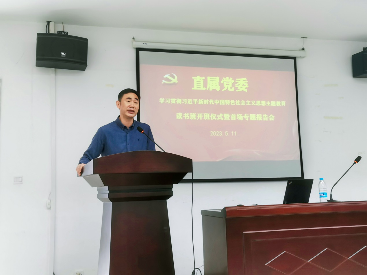 2023年5月11日上午,直属党委在图书馆一楼会议室举行学习贯彻习近平新时代中国特色社会主义思想主题教育读书班开班仪式暨首场专题报告会。继续教育学院全体党员出席会议。