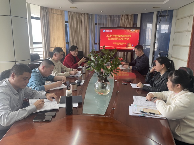2025年3月12日下午,继续教育学院党支部在学院会议室召开2024年度组织生活会。直属党委书记邓毓旺全程参与并给予指导、党支部书记柯益群主持会议、支部全体党员都参加了会议。