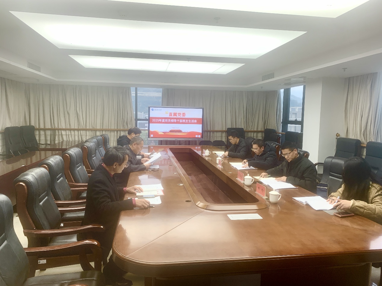 1月21日下午,直属党委在行政楼六楼会议室召开2025年度党员领导干部民主生活会。副校长何仕莅会指导,学校指导组有关同志、直属党委委员参加会议。