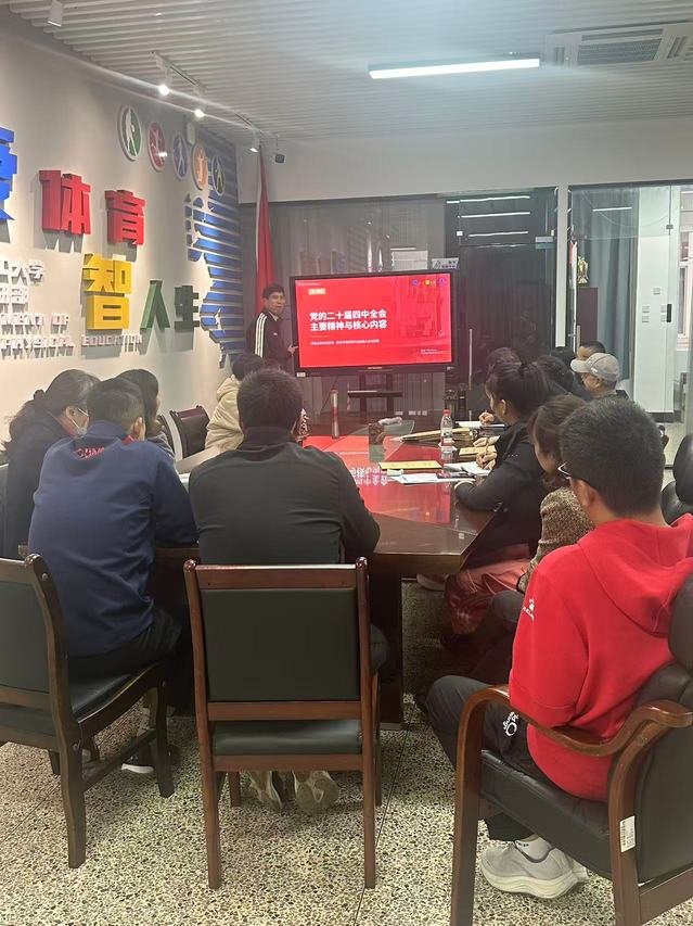 12月24日,体育部主任林长地以“深入学习贯彻党的二十届四中全会精神,推动我校体育工作高质量发展”为题,为党支部全体党员讲授专题党课。